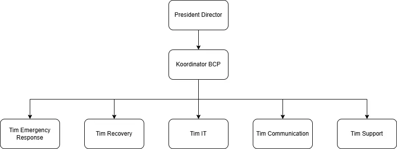 | 0,5 | Tim IT berkoordinasi dengan coordinator BCP | Group komunikasi darurat (email group, grup WA/Telegram khusus BCP) | Tim IT dan Koordinator BCP |